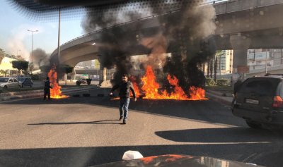 - بالصورة: قطع طريق الكورنيش البحري في صيدا۔